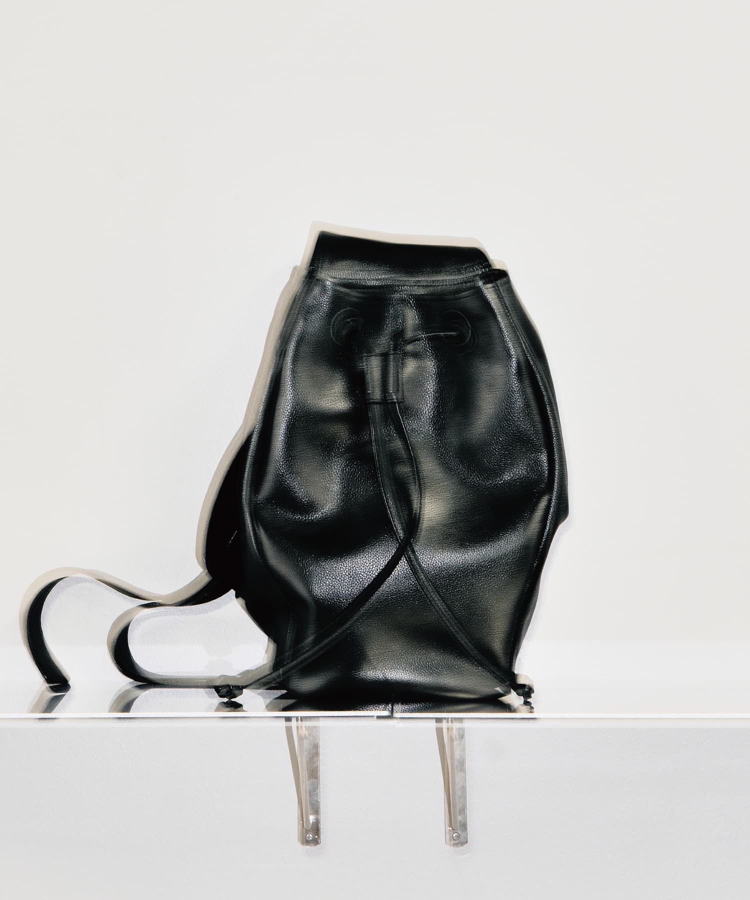 【RE-STOCK】TECHNICAL COW LEATHER DRAWSTRING BAG / BLACK