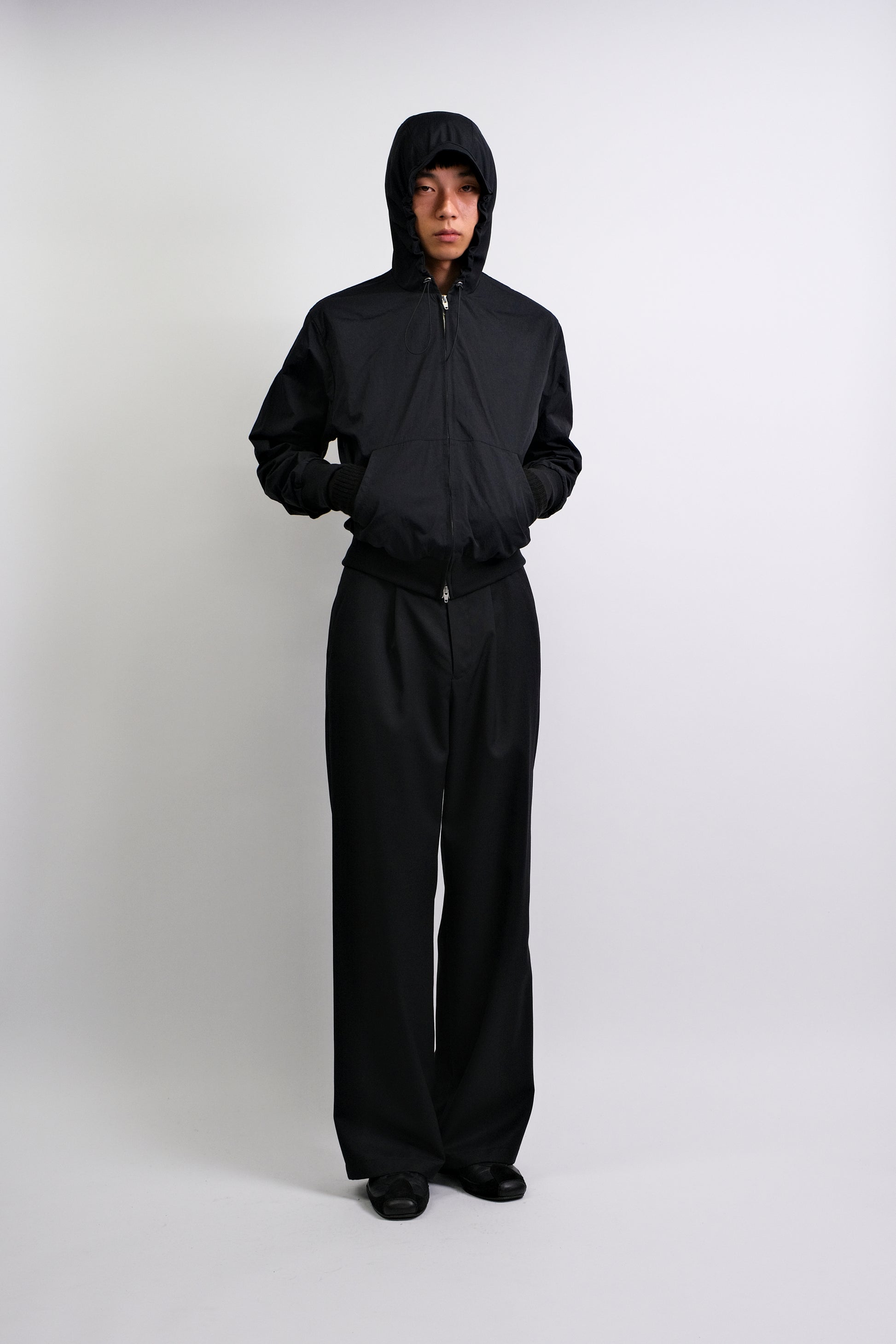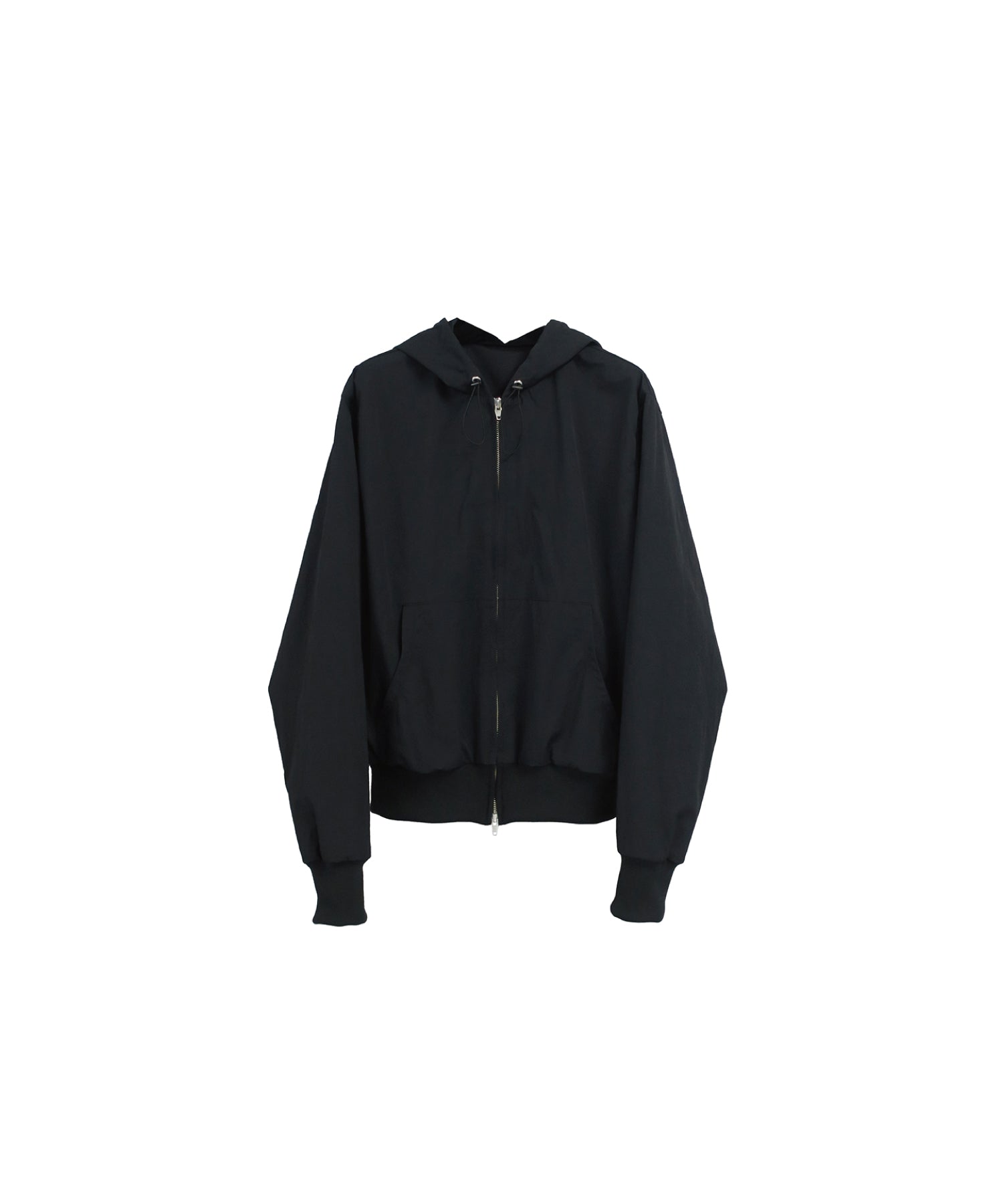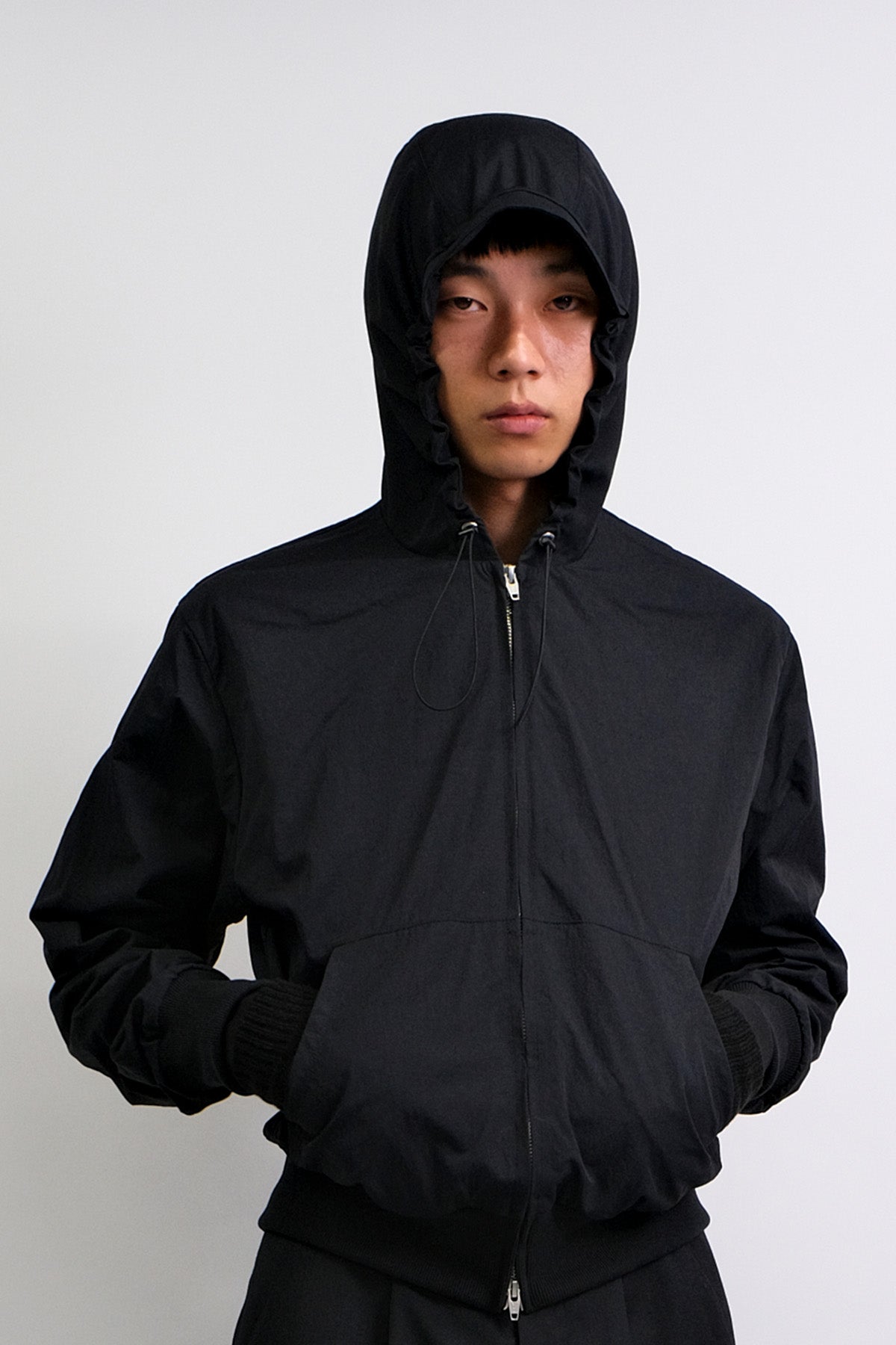 BRIMMED NYLON ZIP HOODIE/ BLACK