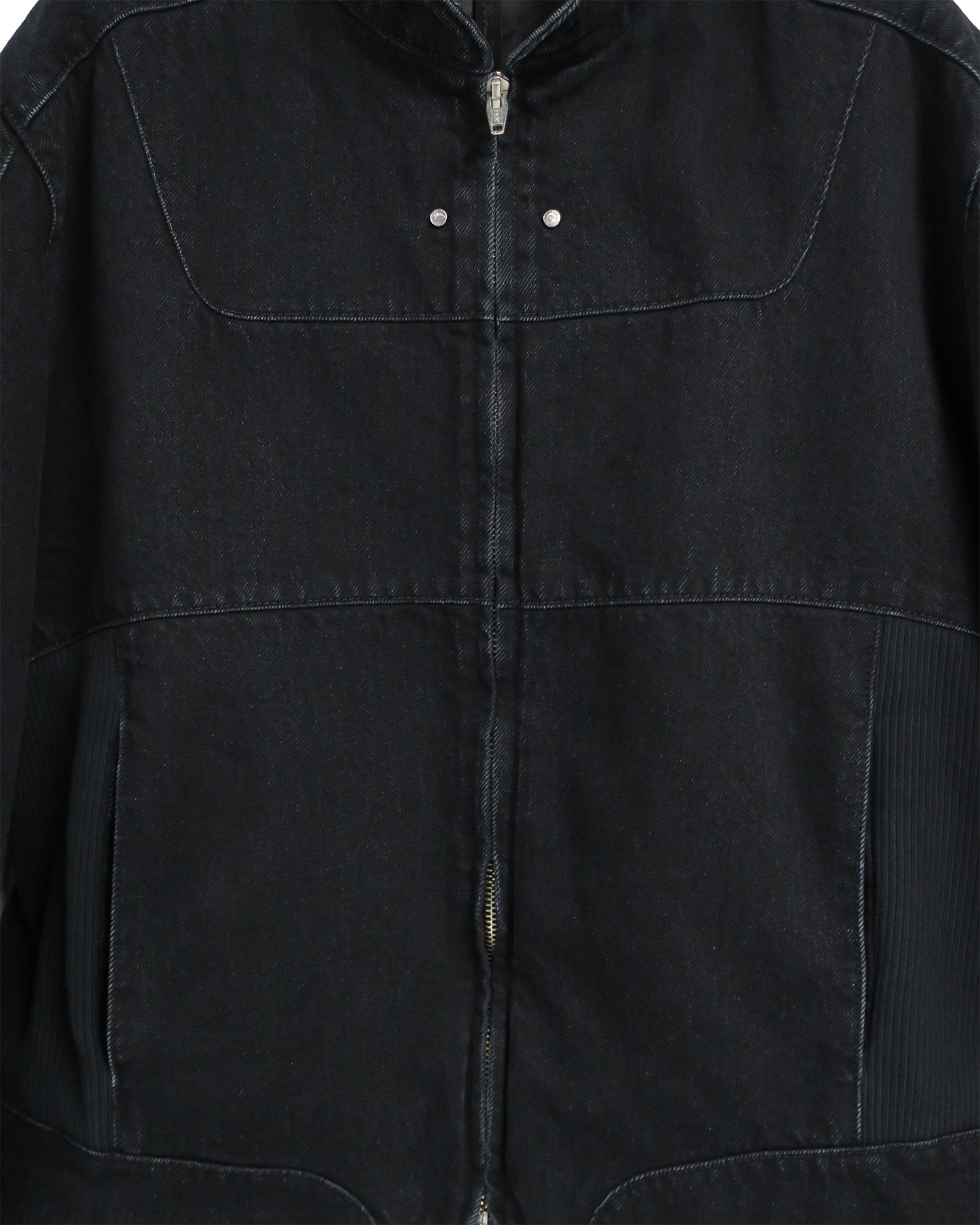 13oz DENIM×RIB PANEL THREE-D BLOUSON/ BLACK
