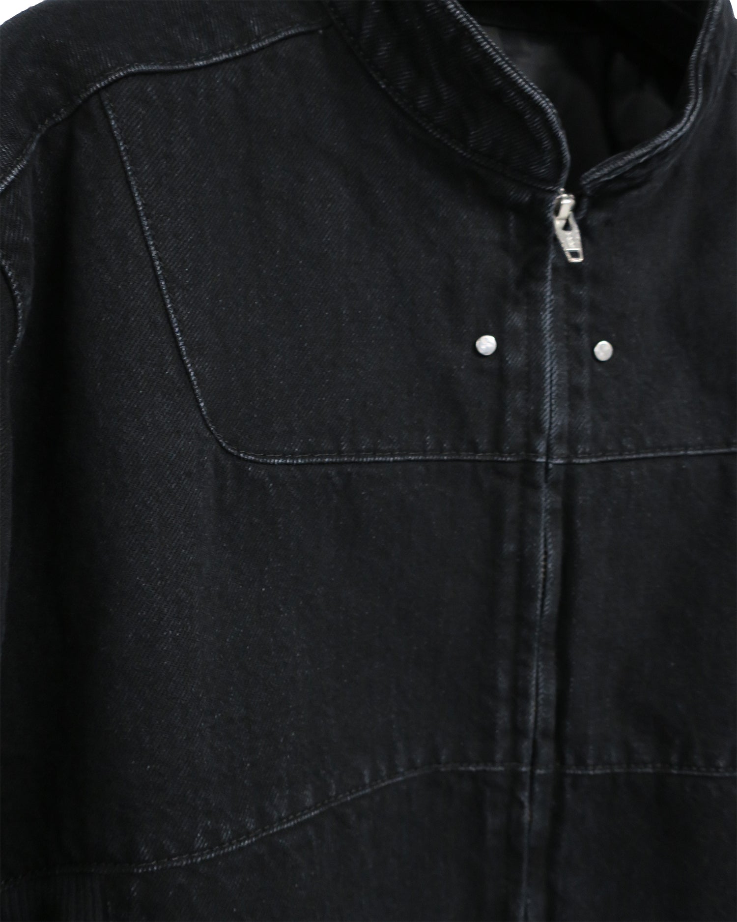 13oz デニムとリブを組み合わせた立体的なパターンニングのブルゾン。ご注文確定後にバイオストーンウォッシュ加工が入る為、加工に7営業日程度お時間いただく場合がございます。