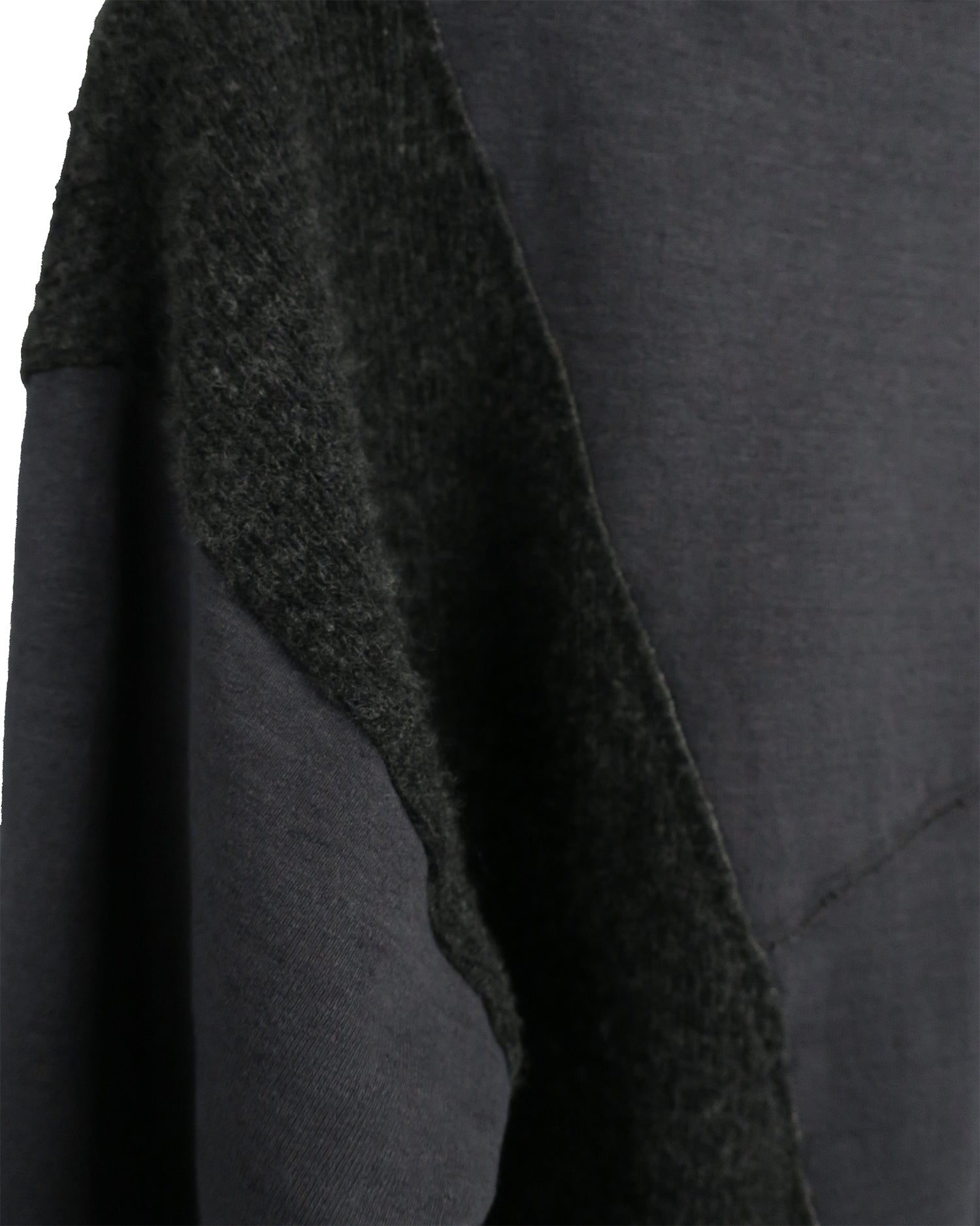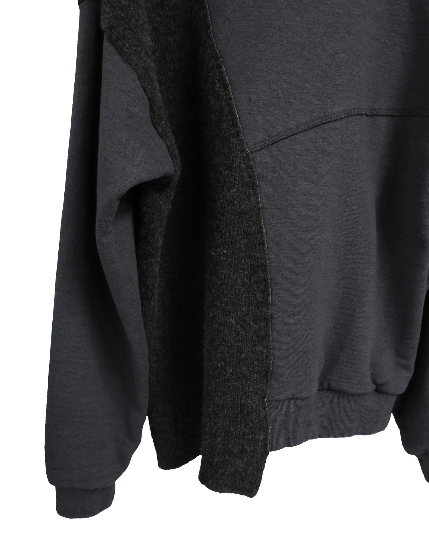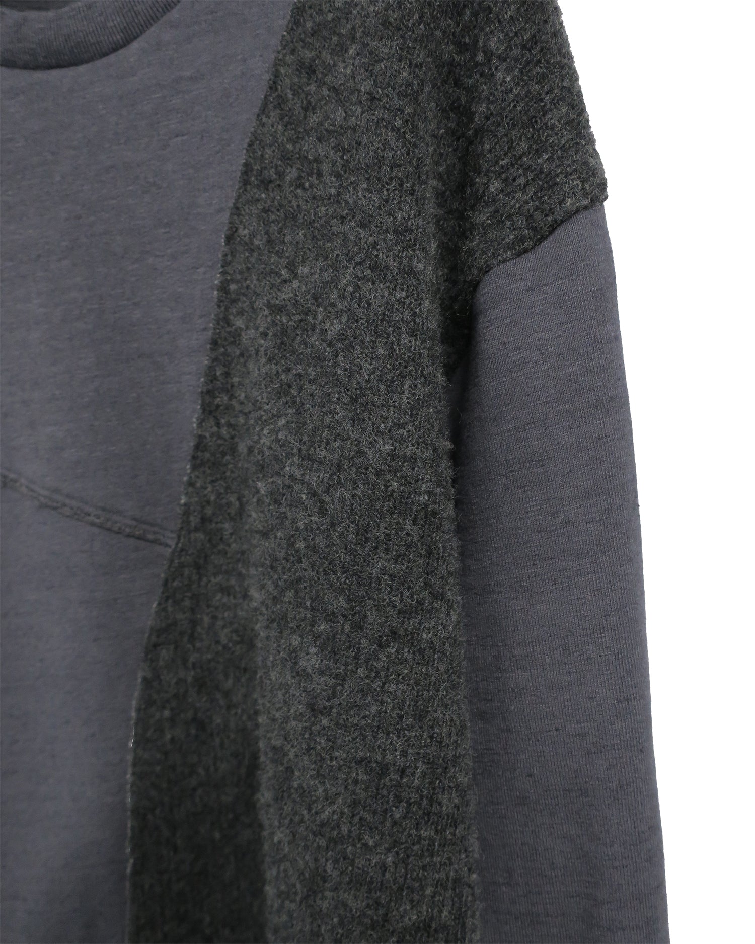 REBUILT TEXTURED PANEL KNIT COMBI SWEATSHIRT/ D-GRAY