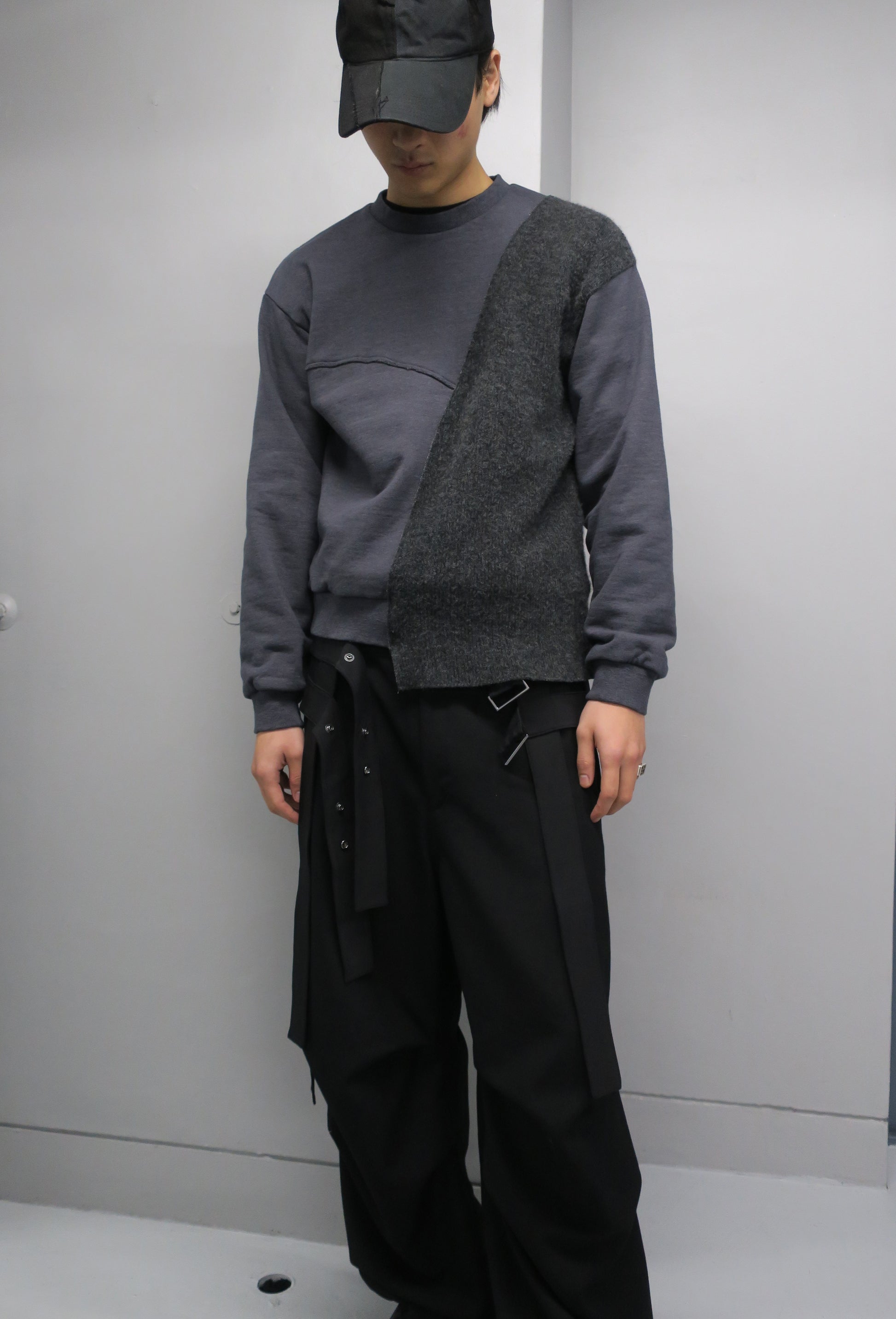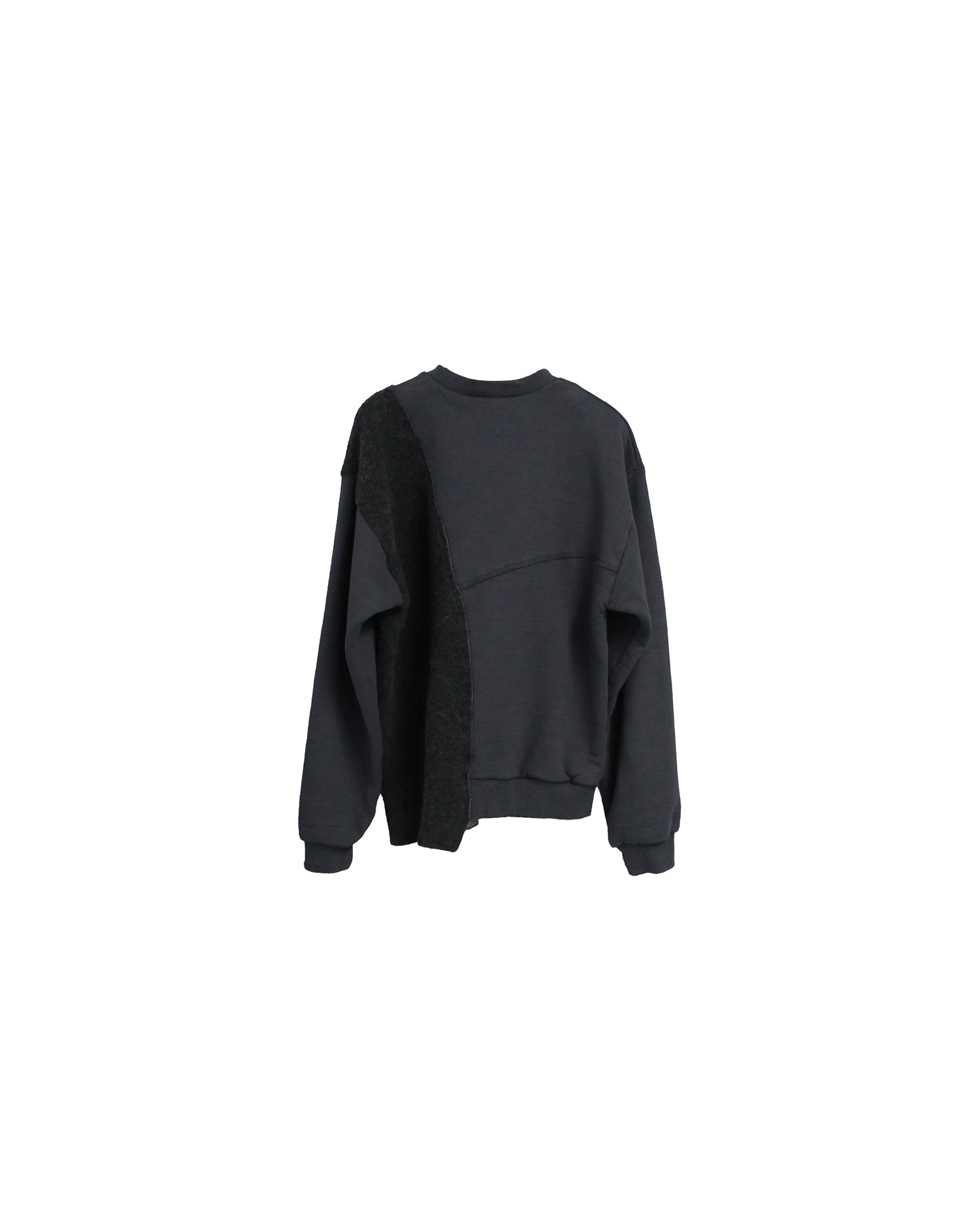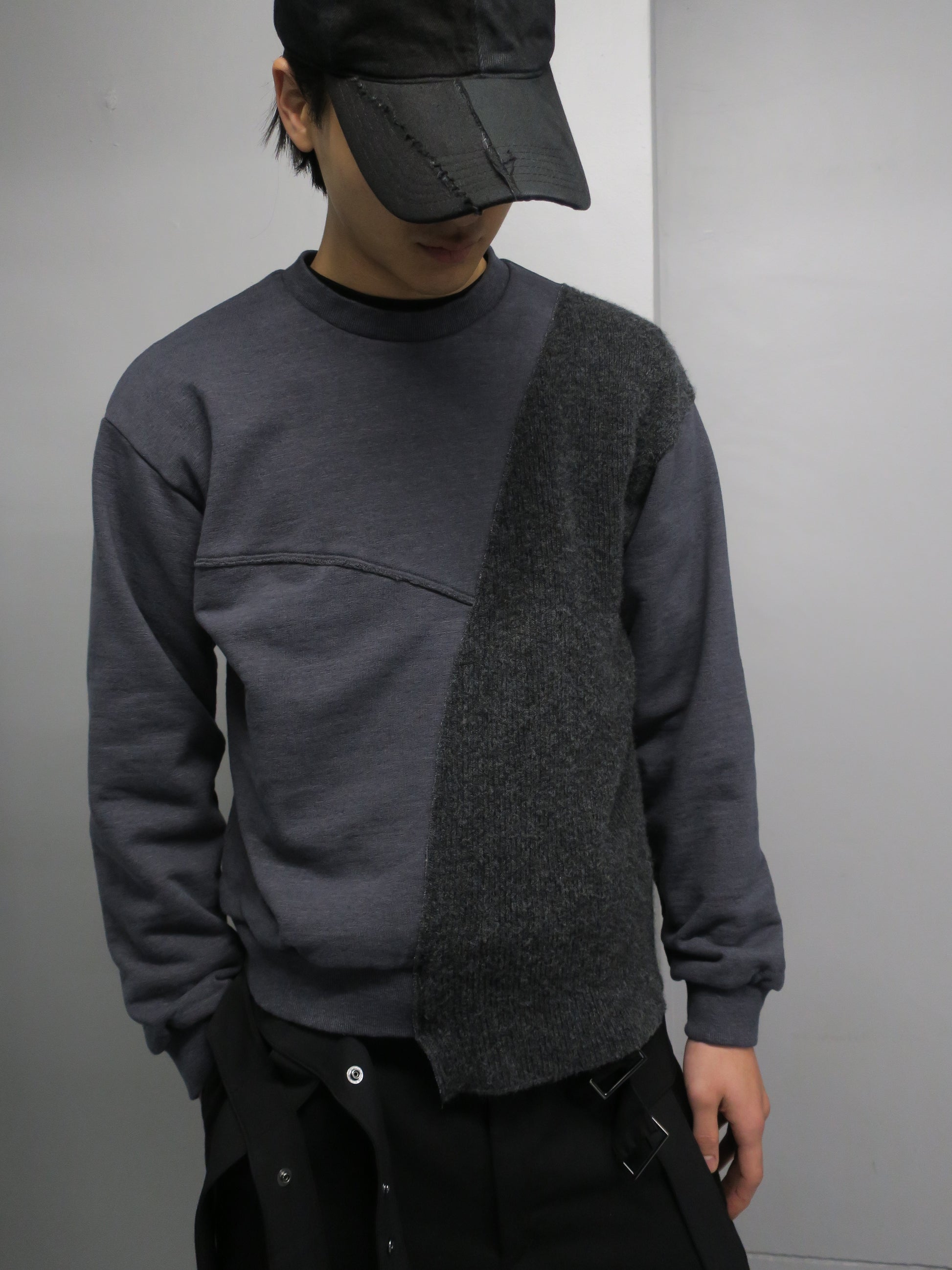 REBUILT TEXTURED PANEL KNIT COMBI SWEATSHIRT/ D-GRAY