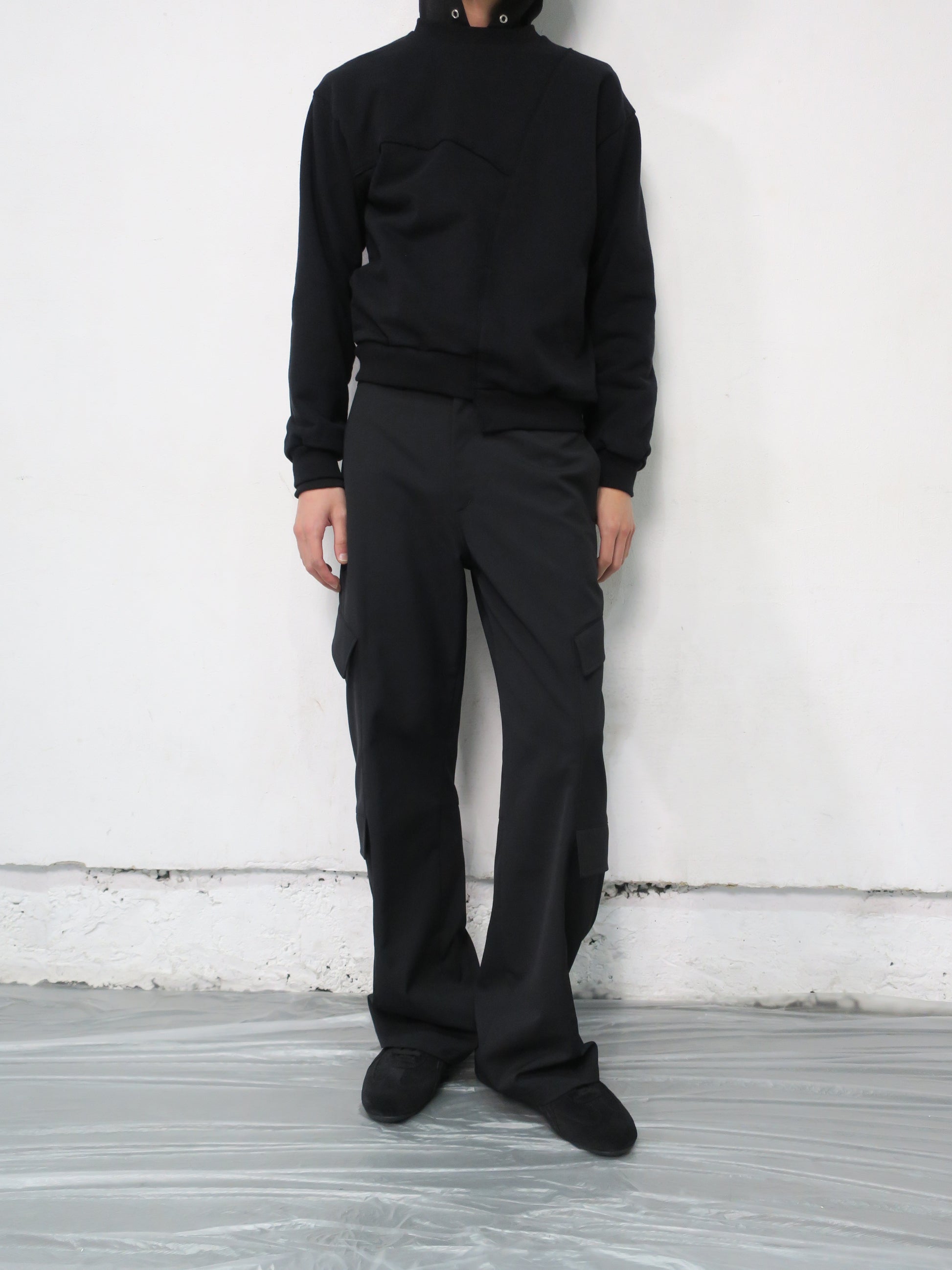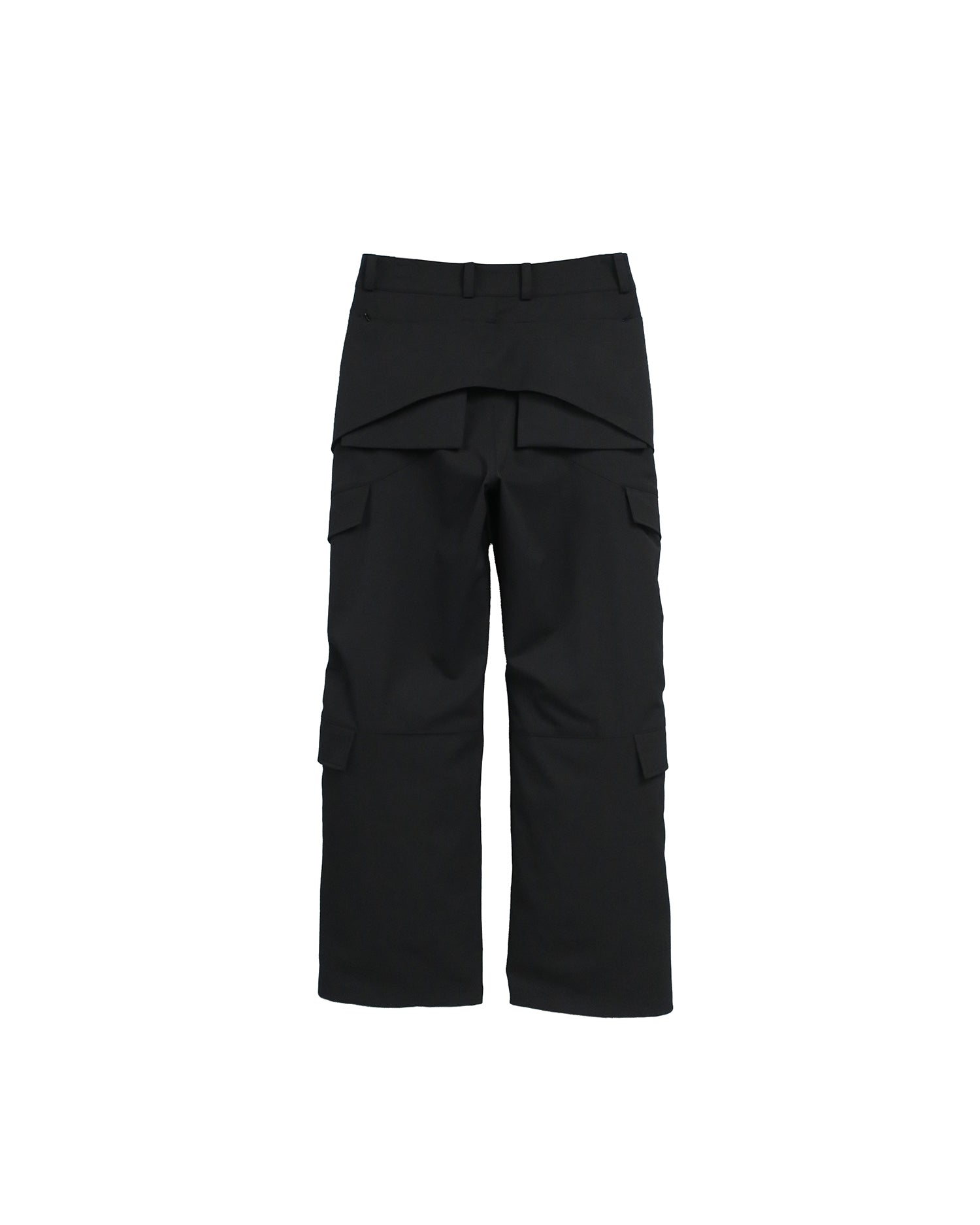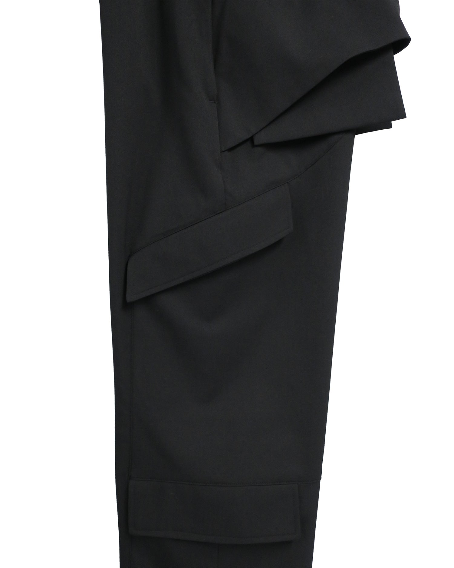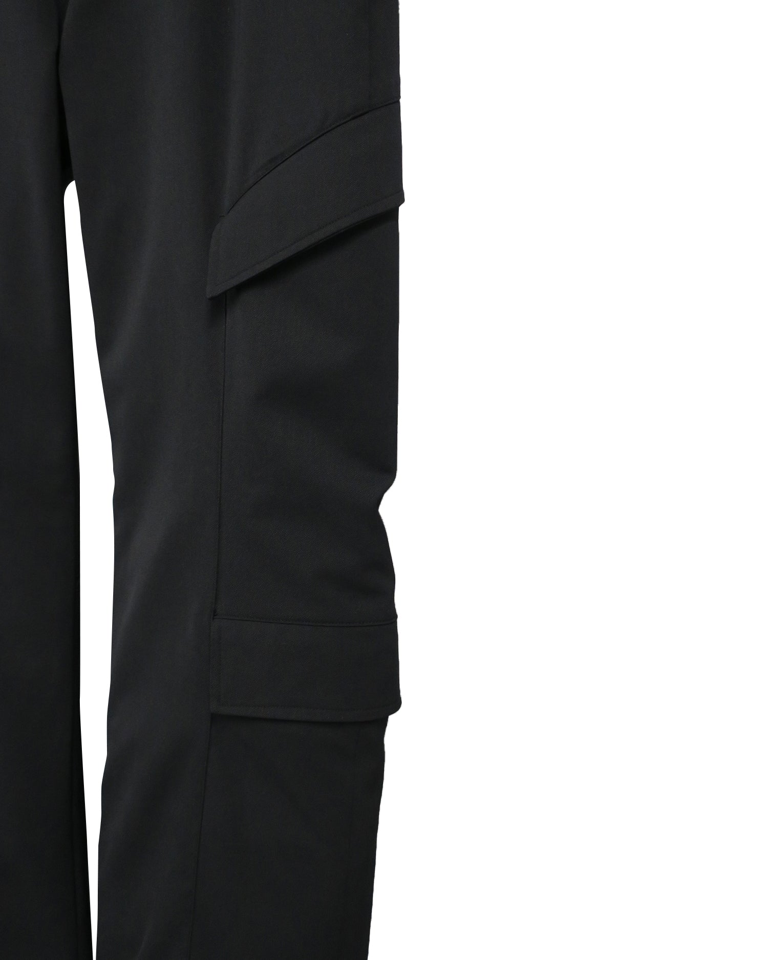 劣化しにくくドライ感とハリのある風合いで、快適な着心地のギャバジンウール生地を使用。綺麗な細身のラインで裾にかけて若干ブーツカット寄りのシルエットになっている。サイドに6つのポケット、バックにはジップ付きのポケット。