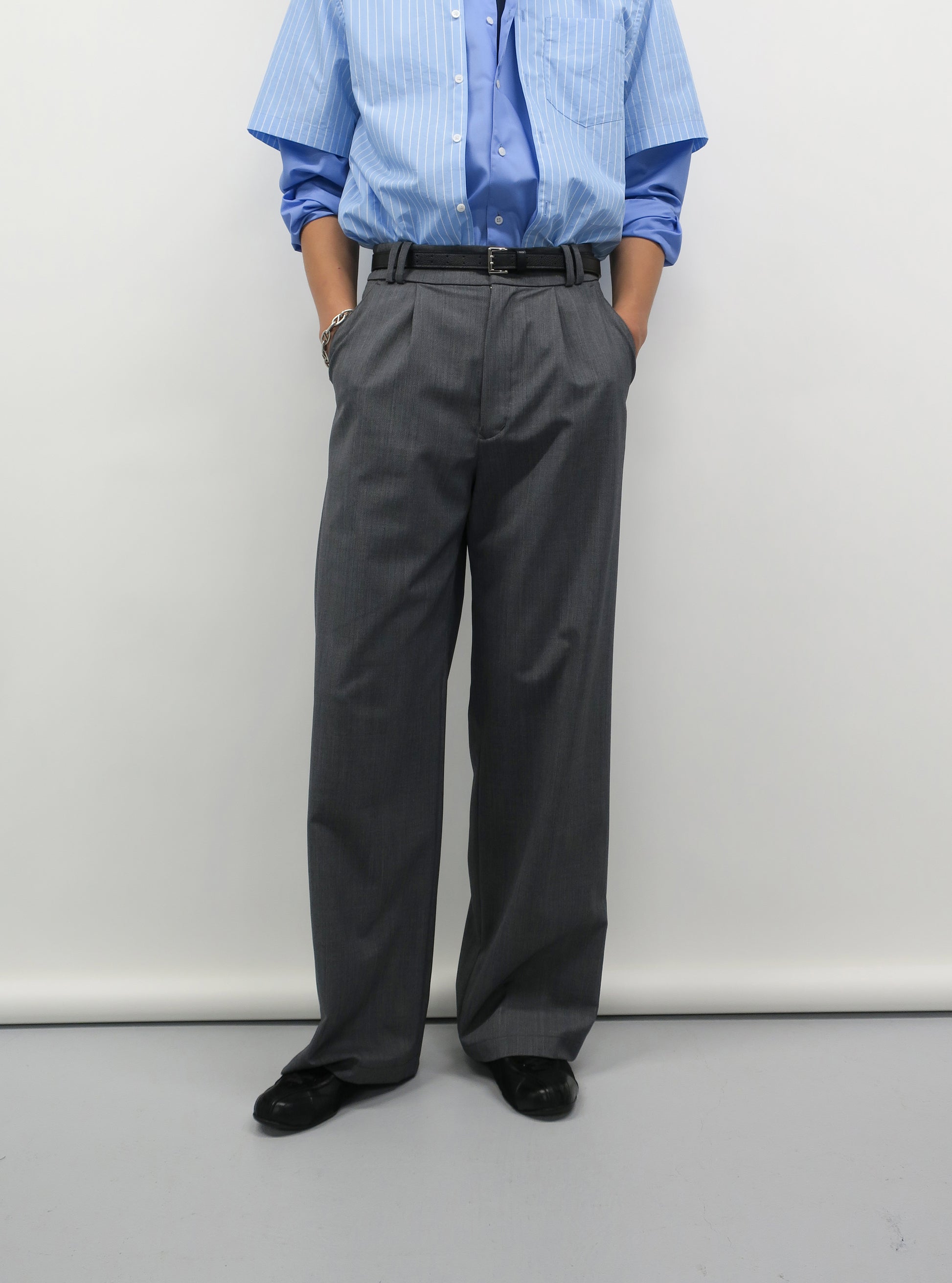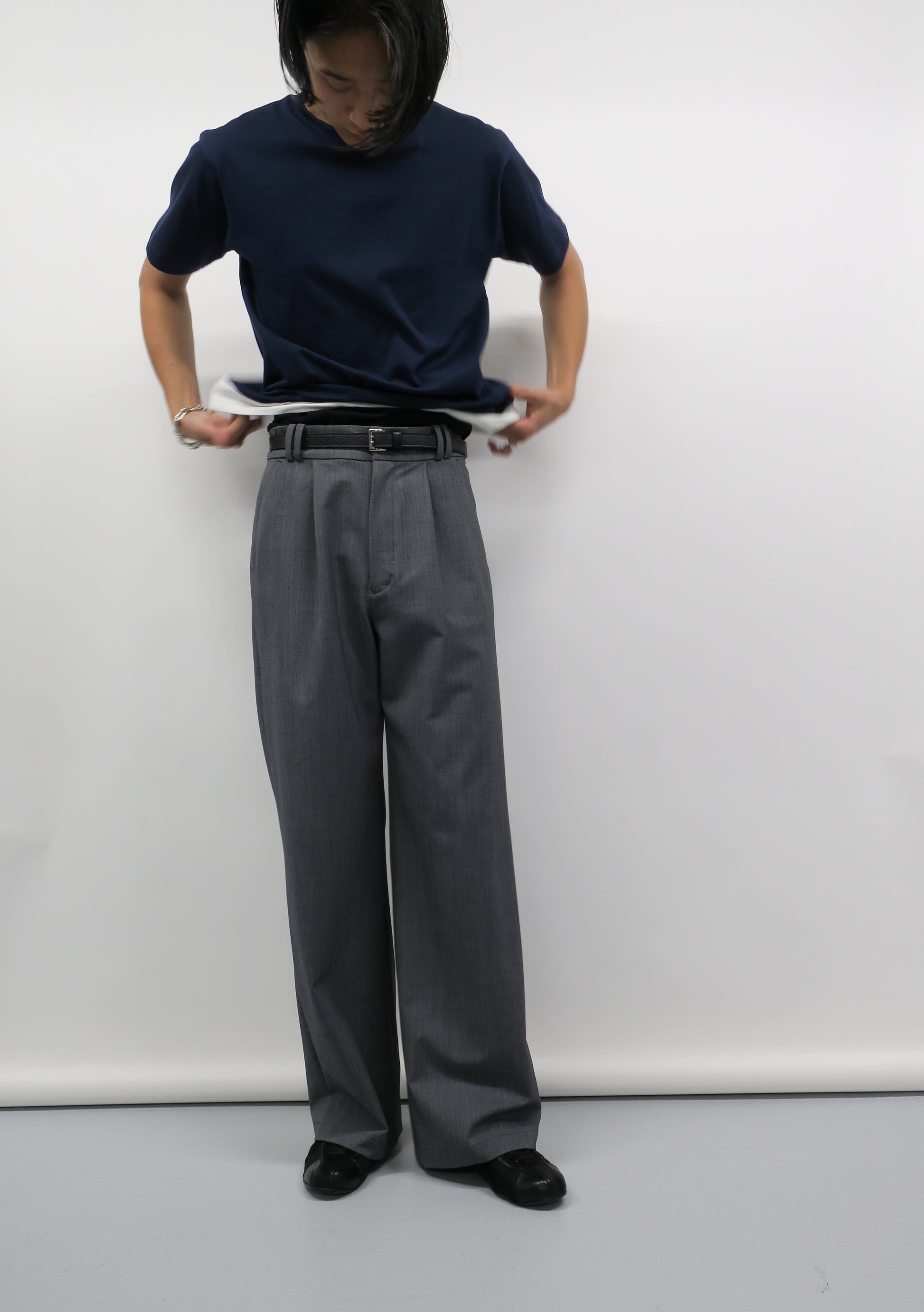 DOUBLE LOOP RELAXED STRAIGHT TROUSERS / GRAY