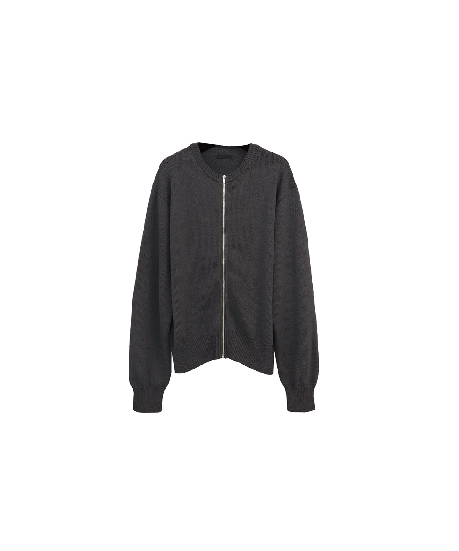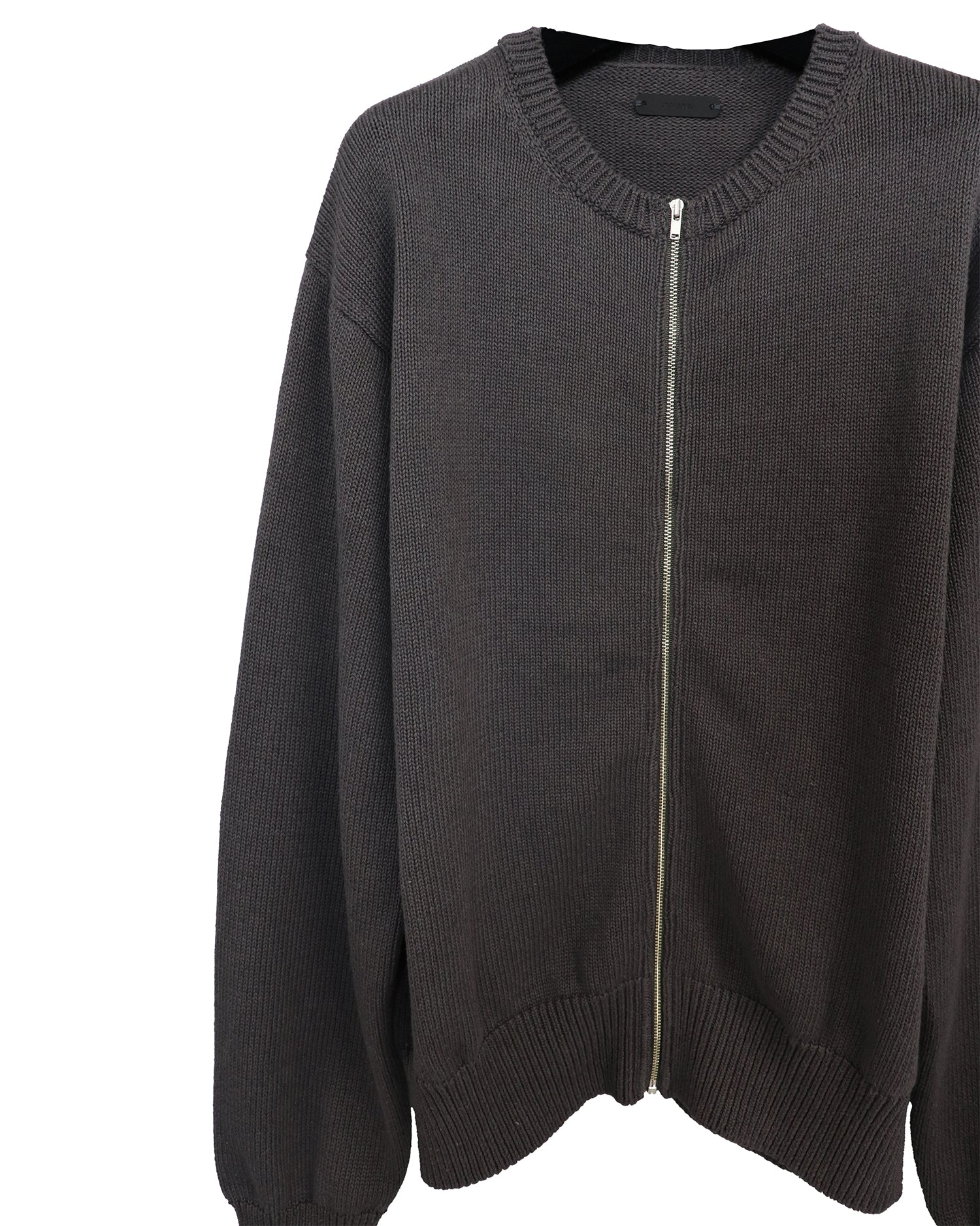 【LIMITED】COTTON LINEN CREW NECK KNIT ZIP CARDIGAN/ GRAY