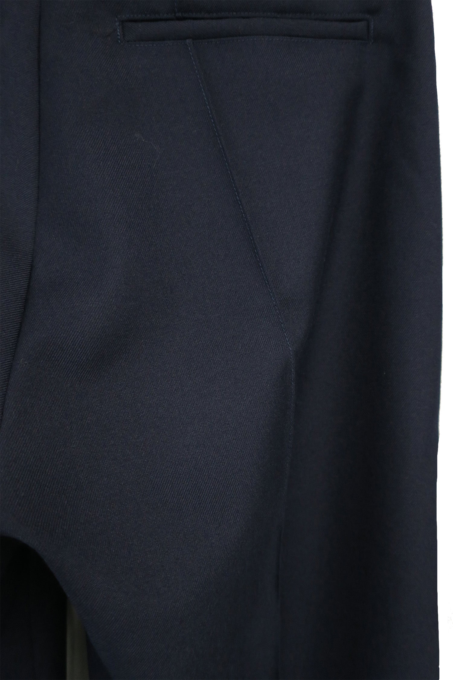 伝統的な尾州のギャバジンウール生地を使用。やや細身のブーツカットにピンタックを入れる事で、縦ラインが強調されるシャープな印象のパンツ。
